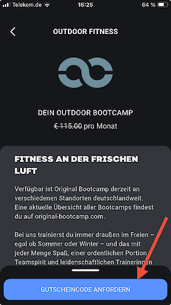 Buche unser Angebot über die Hansefit App und erhalte deinen persönlichen Gutscheincode per E-Mail. Besuche dazu deine Hansefit-App. So geht's.